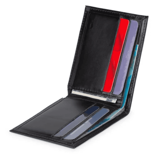 O volume no bolso da calça destrói o caimento de qualquer roupa. As carteiras bifold gigantes ficaram no passado. O homem atual usa porta-cartões minimalistas de couro ou alumínio com proteção RFID (que impede golpes de aproximação). Elas forçam você a carregar apenas o essencial: documento, alguns cartões e ponto.