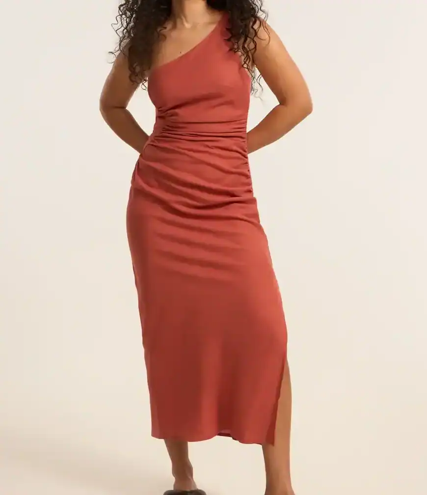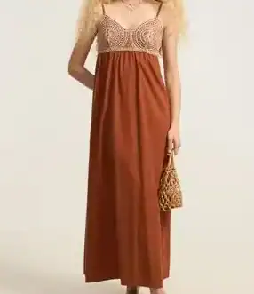 2. Vestidos em Tom Terracota: Eles trazem um calor imediato para o visual e ficam perfeitos com jaquetas jeans ou de couro.
