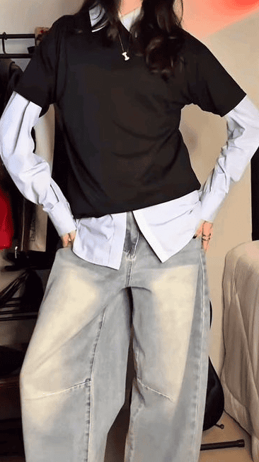 Aqui entra uma confusão comum: jogar uma jaqueta por cima de uma blusa é sobreposição? Mais ou menos. Isso é o que chamamos de “terceira peça”. A sobreposição real (aquela que eleva o look) acontece quando as peças interagem entre si. Por exemplo: a gola de uma camisa aparecendo por baixo de um moletom, ou uma camiseta básica sob um vestido de alcinha.