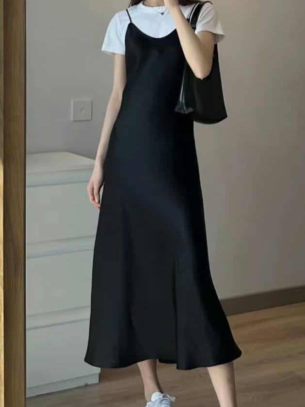 Um clássico herdado dos anos 90 e que nunca falha. Sabe aquele vestido de festa ou de verão que fica parado no armário? Coloque uma camiseta branca (ou preta) por baixo dele. Finalize com um tênis casual ou coturno e você tem um visual urbano, confortável e super jovem.